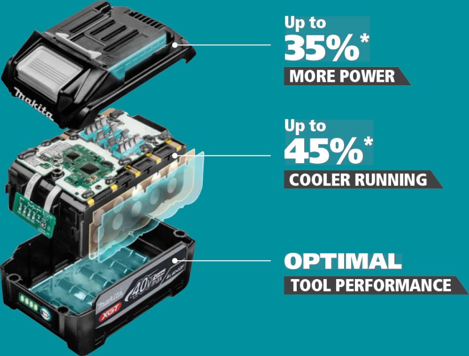 Exclusively available on the BL4040F these next-generation cells are designed with cutting-edge technology. Tabless lithium-ion cells remove the bottleneck allowing for a much more efficient method of power delivery.